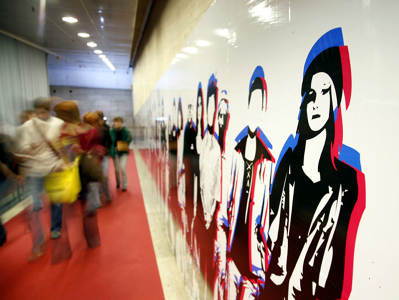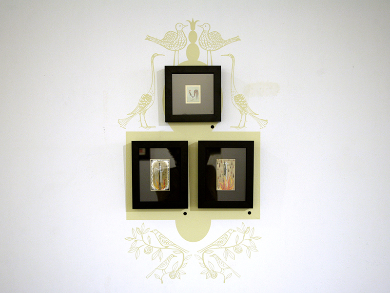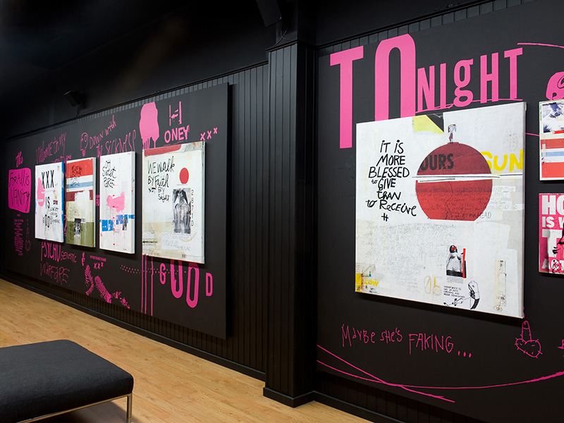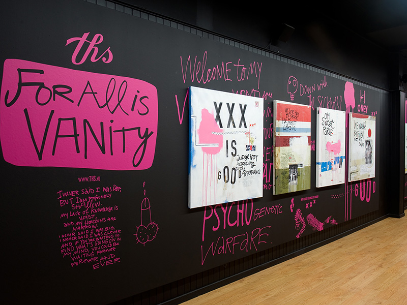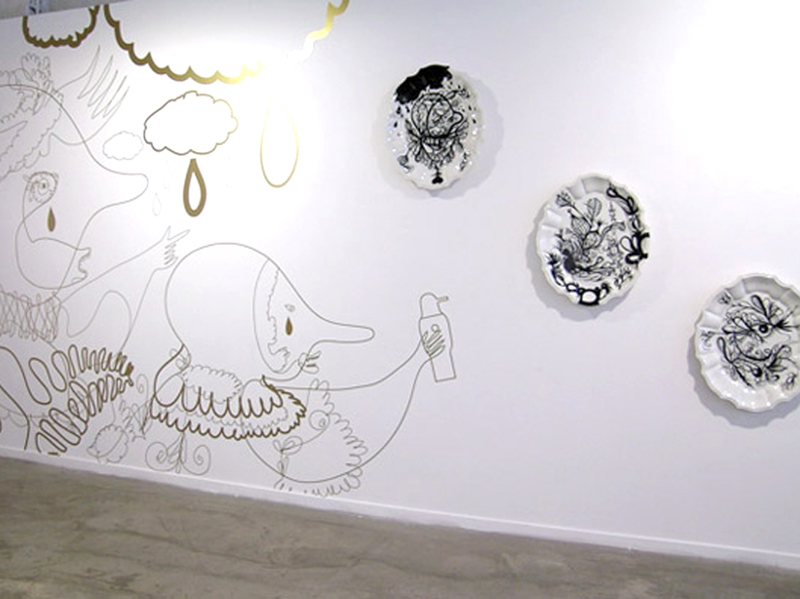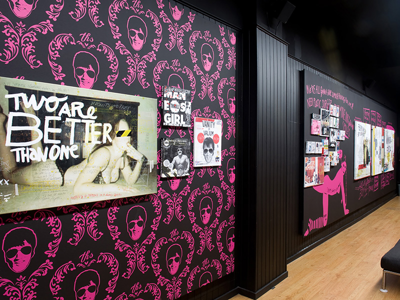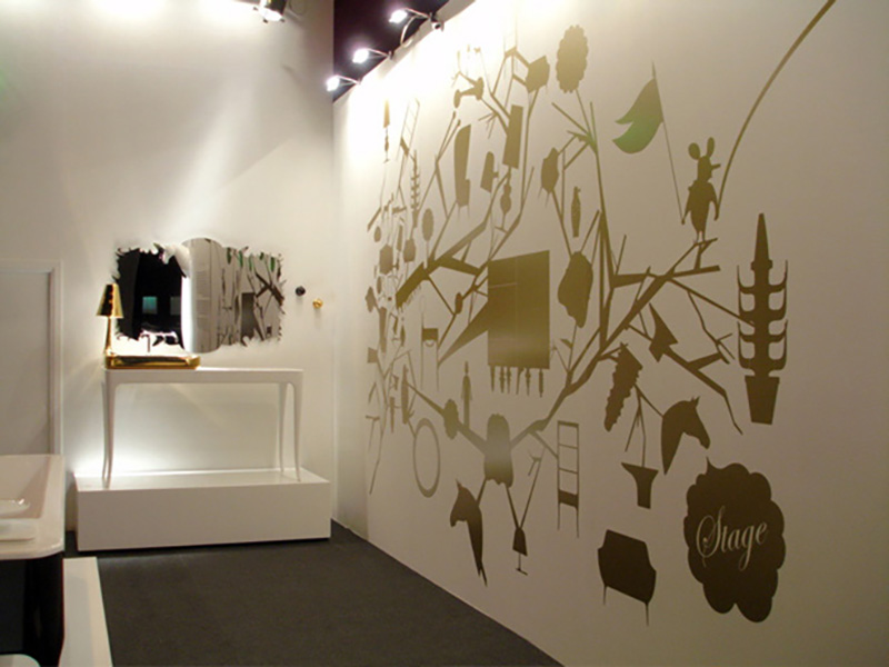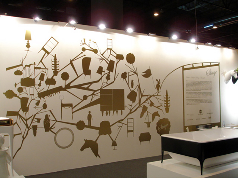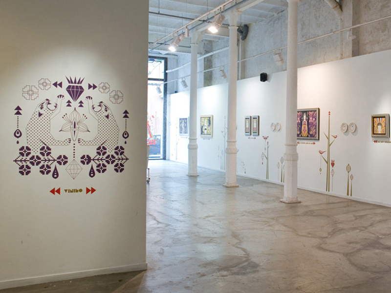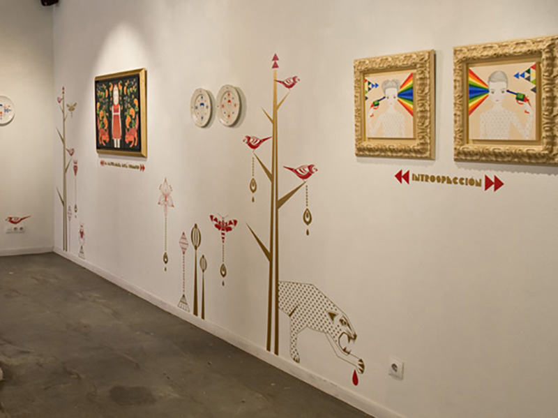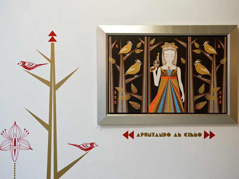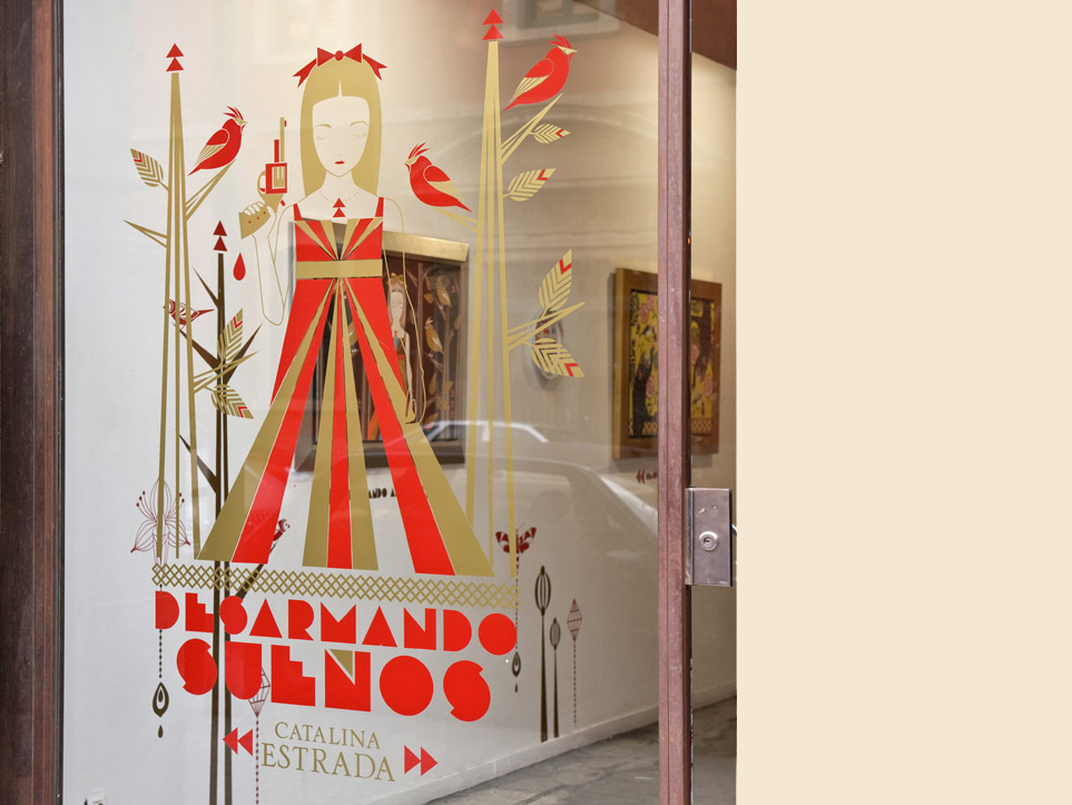 La colaboración se Marina también se extendió a Catalina Estrada para sus obras en vinilo adhesivo para paredes y escaparates de la galería.