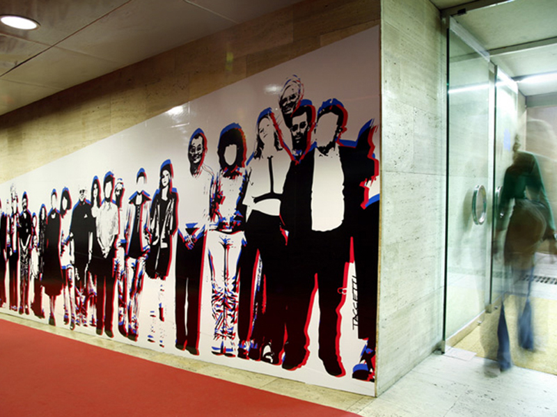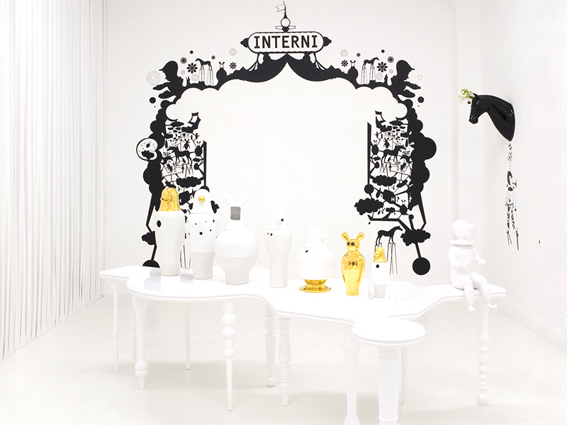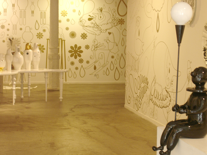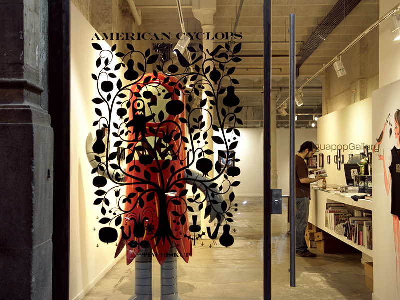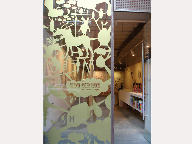 Producción de obras en vinilo adhesivo de Jaime Hayón para instalar en su primera exposición en Iguapop Gallery: Mon Cirque. Así comenzó a colaborar Marina con el artista madrileño para sus obras itinerantes. Producción de cada obra en vinilo, mapa de instalación y gestión del montaje desde Barcelona. Mon Cirque viajó a Londres, Lisboa, Minneápolis y Colonia.